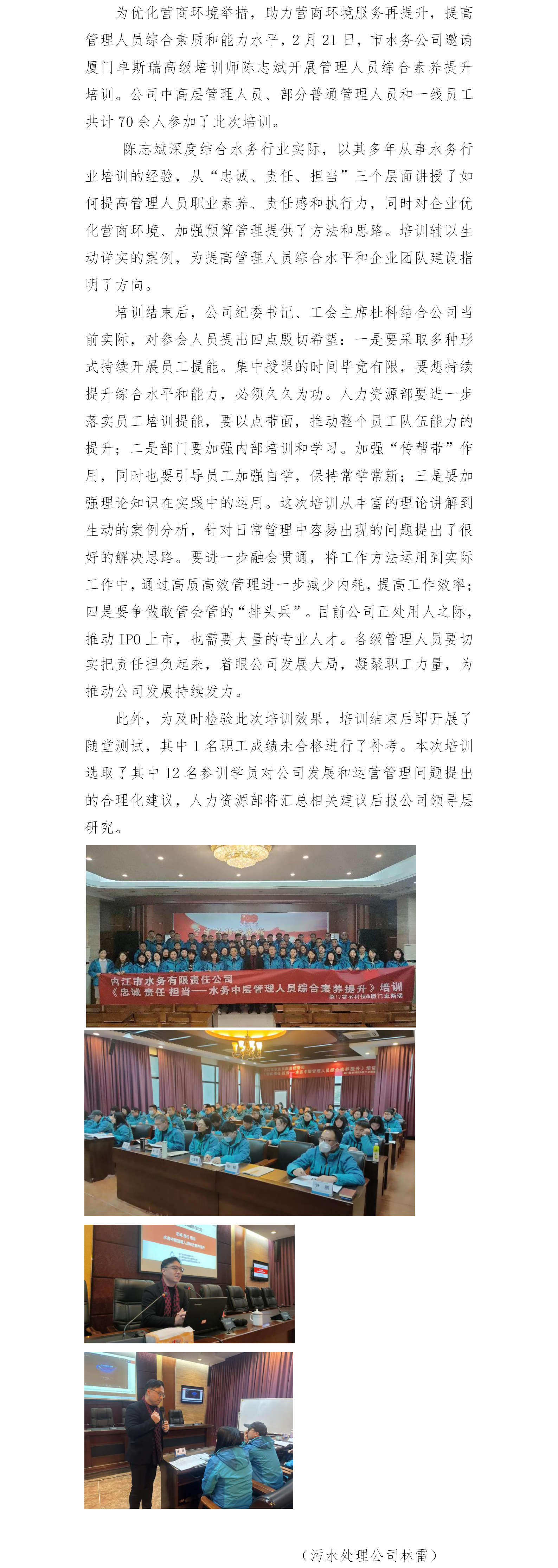 市水務(wù)公司開(kāi)展管理人員綜合素養(yǎng)提升培訓(xùn)