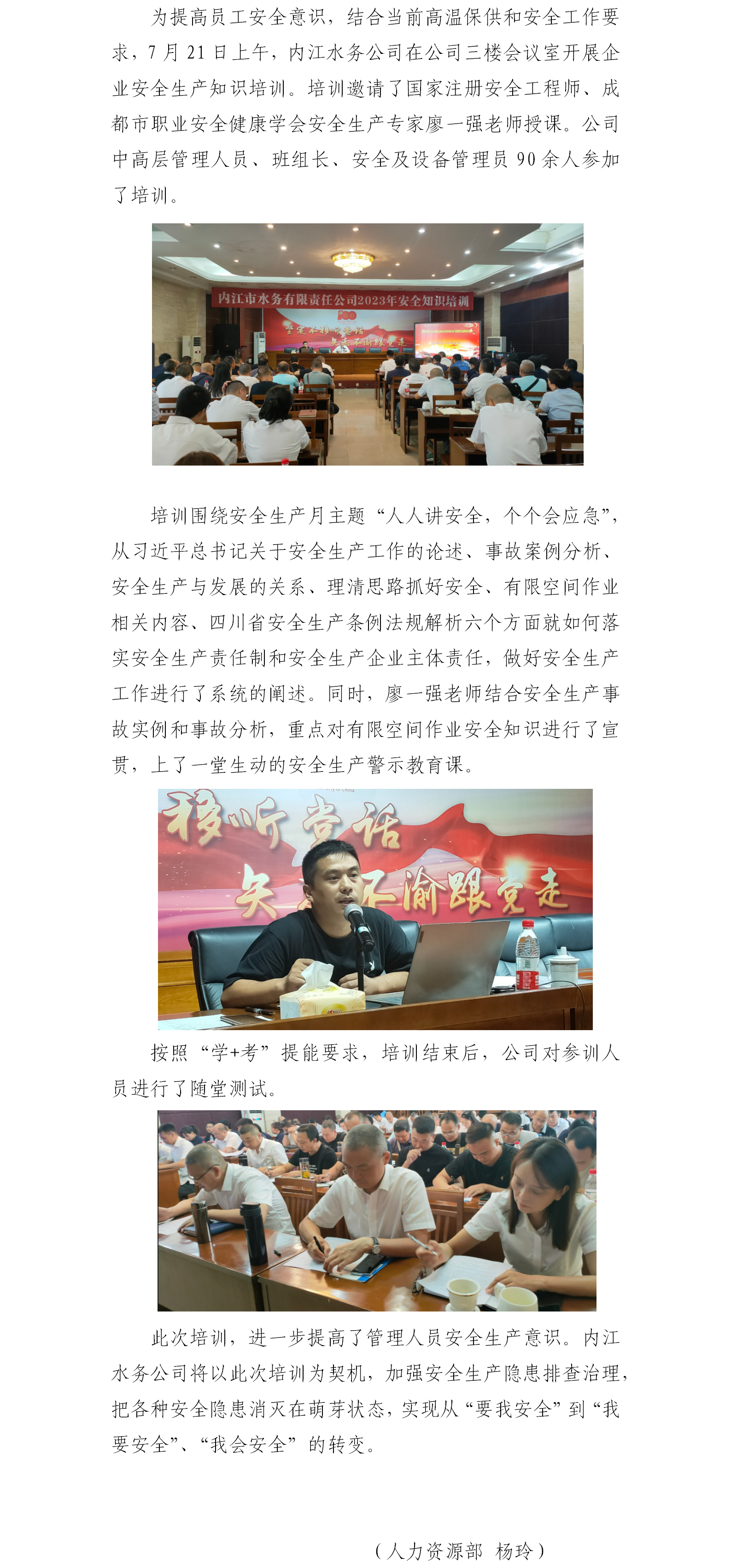 內(nèi)江水務(wù)公司:加強(qiáng)安全培訓(xùn),樹牢安全意識(shí)